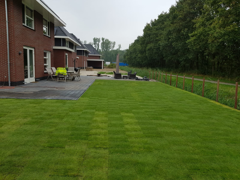 bestrating en schutting zodat de graszoden naadloos aansluiten.